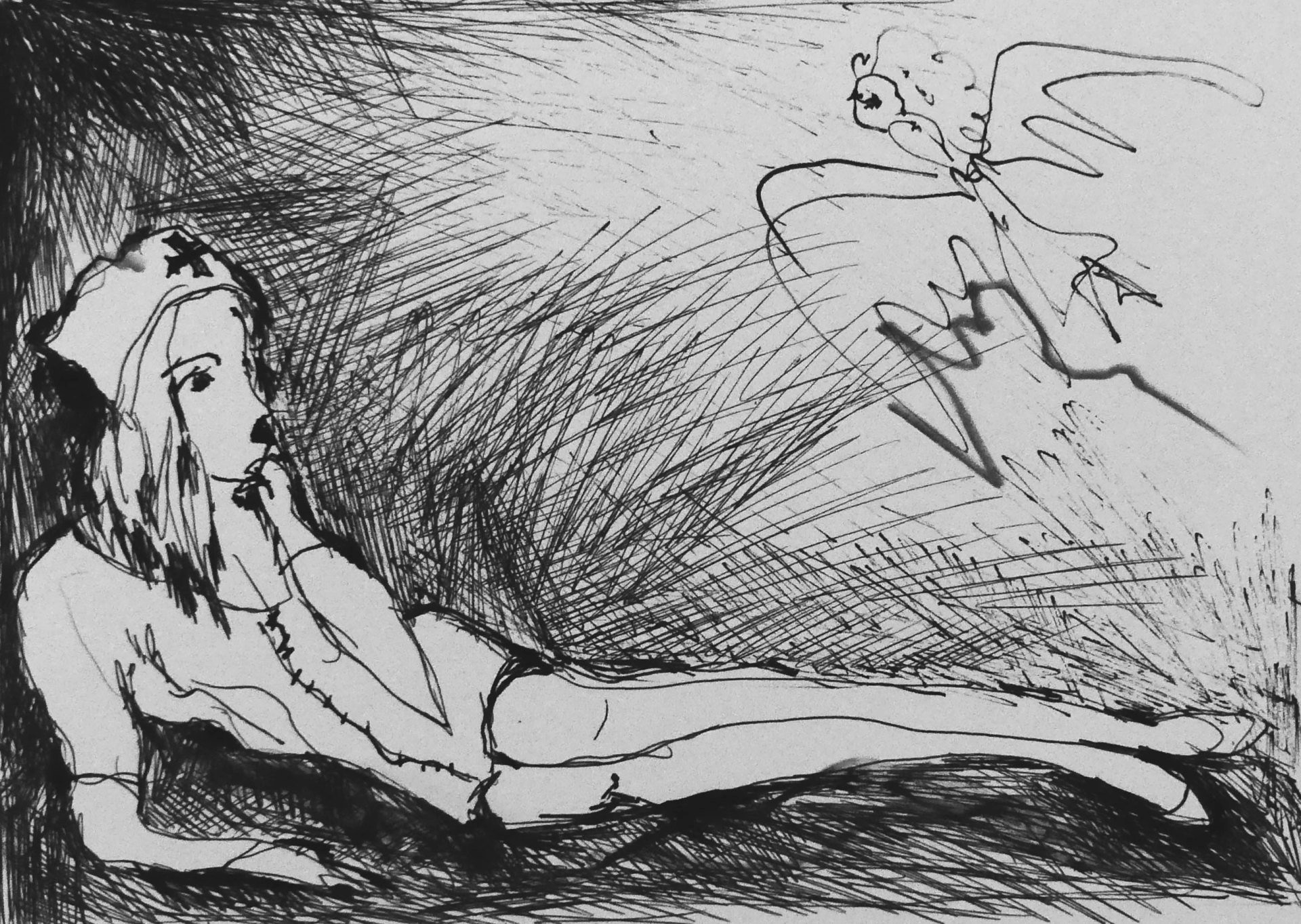Klosterfrau, Fineliner mit japanischer Tusche auf Papier