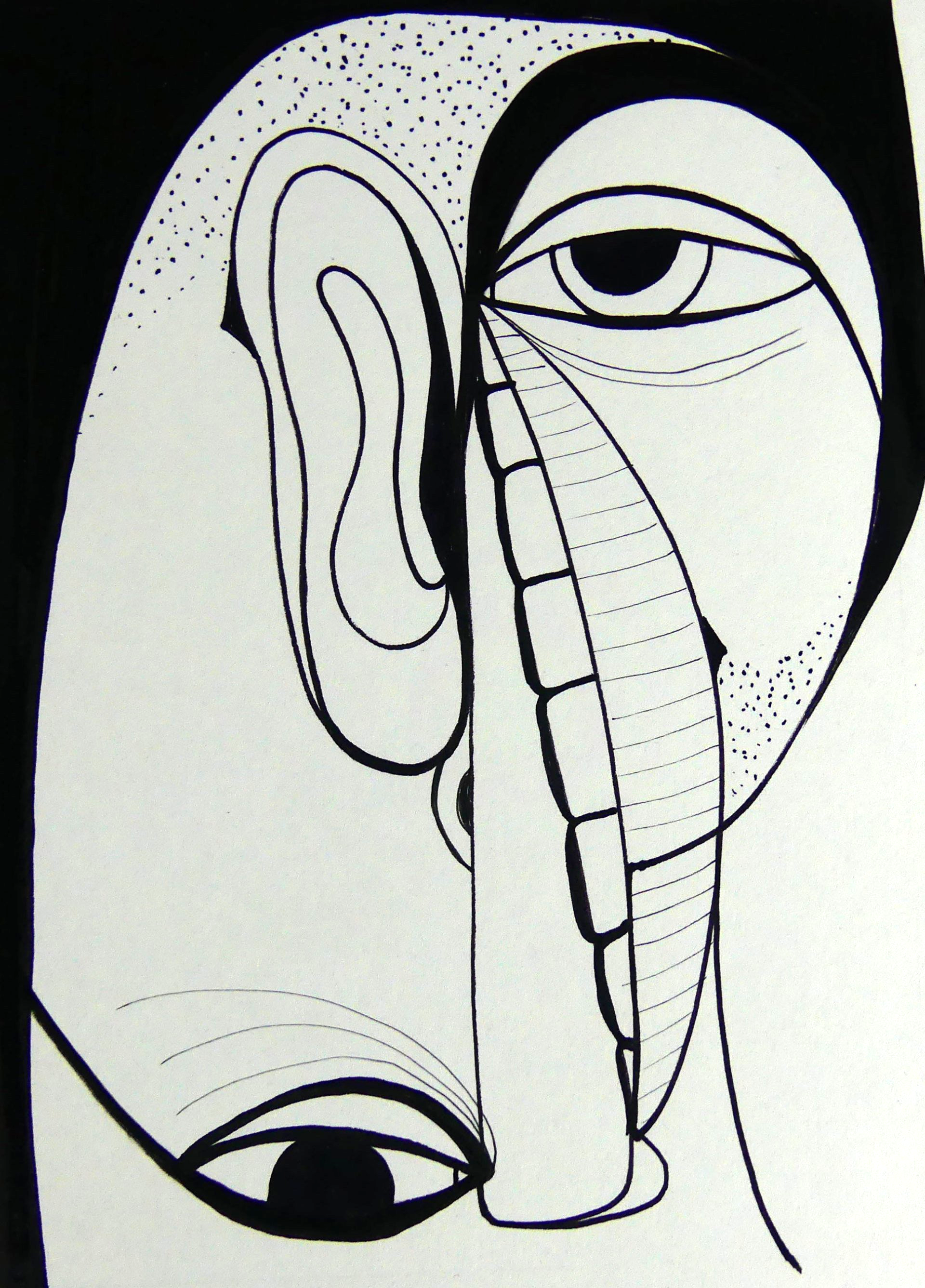 Gesicht, Fineliner mit japanischer Tusche auf Papier